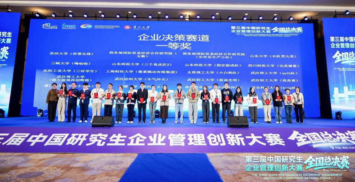 据介绍,“中国研究生企业管理创新大赛”是“中国研究生创新实践系列大赛”主题赛事之一,由教育部学位管理与研究生教育司指导,中国学位与研究生教育学会、中国科协青少年科技中心主办,全国工商管理专业学位研究生教育指导委员会联合主办。本届大赛共吸引全国321家研究生培养单位的4176支队伍、超18000名师生报名参赛。决赛分为“企业决策”、“商业分析与实践”、“工商管理案例”与“ai与数字技术应用专项”四个赛道。各参赛团队经过激烈角逐,最终140个团队获得一等奖、267个团队获得二等奖、614个团队获得三等奖,37个单位获得“优秀组织奖”。