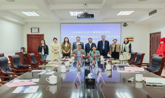 4月16日,山东师范大学与潍坊职业学院共建国际中文教育专业研究生实践教学基地签约暨揭牌仪式在潍坊职业学院举行。潍坊职业学院党委副书记、院长韩瑞东,副院长陈美霞,国际交流与合作处处长蔺永刚,山东师范大学国际教育学院党委书记刘金凯,副院长王其和出席仪式。仪式由潍坊职业学院副院长陈美霞主持。
