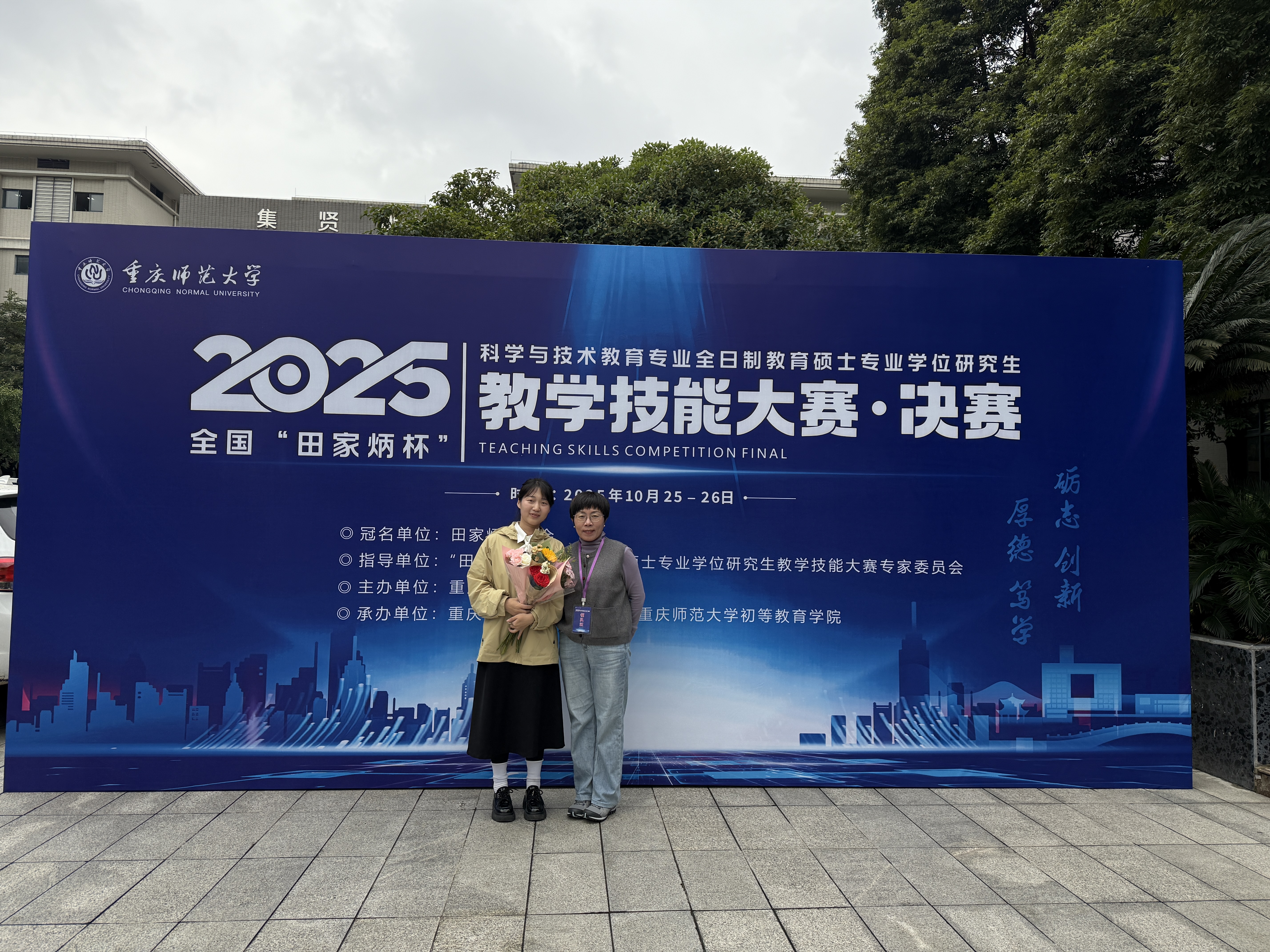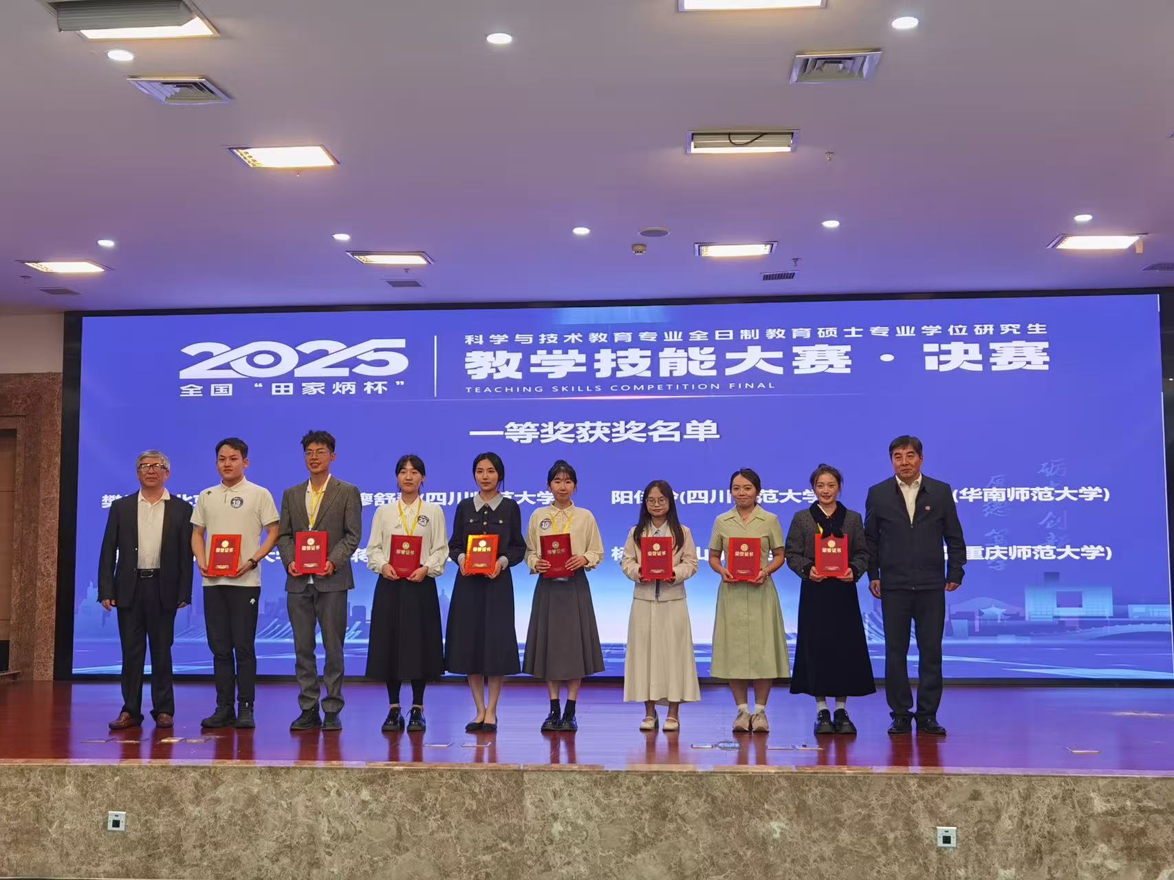 2025年全国“田家炳杯”全日制教育硕士专业学位研究生科学与技术教育专业教学技能大赛决赛于10月24日至26日在重庆师范大学举行。本次决赛共有来自全国36所高校的141名选手同台竞技。我院2024级科学与技术教育专业的参赛选手杨佳文,凭借扎实的专业知识底蕴、精湛的教学技艺及优秀的综合素质成功入围决赛,并斩获优异成绩,荣获一等奖。同时指导教师杜军获得优秀指导教师奖。