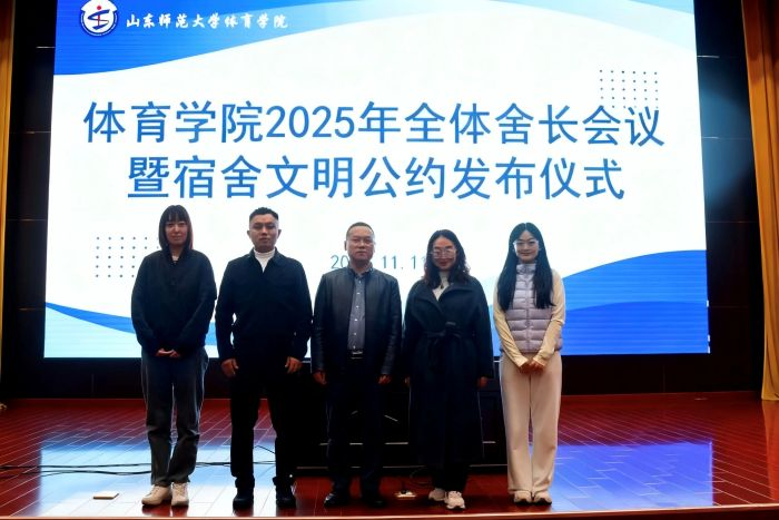为进一步筑牢宿舍“安全防线”,涵养文明新风,着力打造整洁有序,互助友爱的住宿环境,11月11日,体育学院在长清湖校区树蕙堂报告厅举行2025年全体舍长会议暨宿舍文明公约发布仪式。学院党委副书记、纪委书记宋强,全体辅导员以及全体宿舍长出席本次活动。活动由学院团委书记、学生工作办公室主任李娜主持。