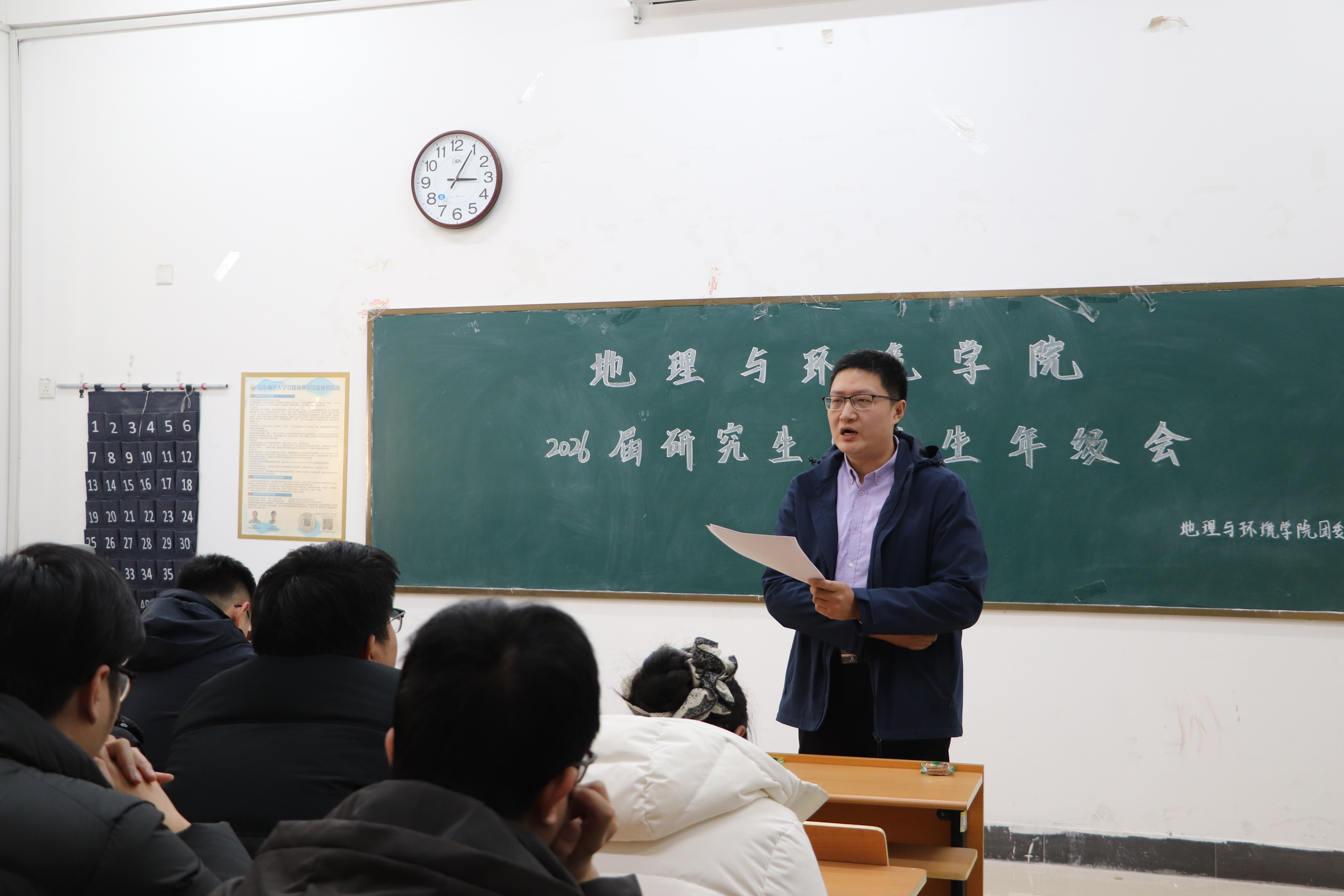 12月26日下午,地理与环境学院于文澜楼h314举办2026届研究生毕业生年级会。会议由学院研究生辅导员唐永超主持,研究生辅导员高宝棣及全体研究生毕业生参加会议。